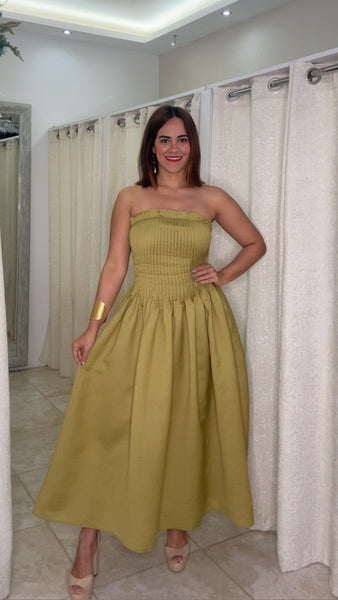 Pleated Kiwi Maxi Dress