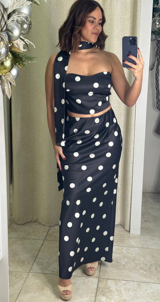 Black & White Polka Skirt Set