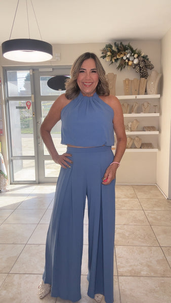 Blue Halter Crop top & Pant Set