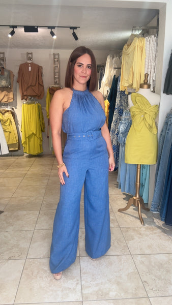 Denim Halter Neck Jumpsuit